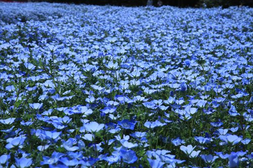 ネモフィラが幻想的に広がる美しい、青い花絶景