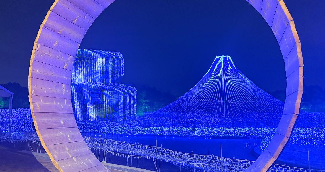 広大なメインテーマリアの中央にそびえる富士山を舞台に、煌びやかな光に包まれた「金の世界」は、見る人すべてを圧倒するスケール。