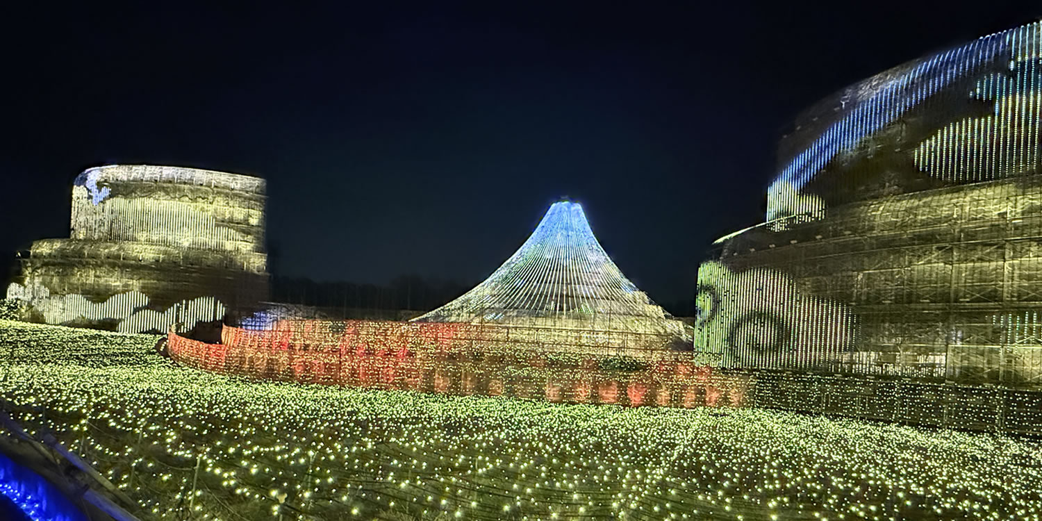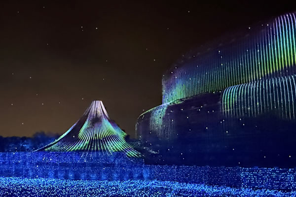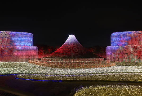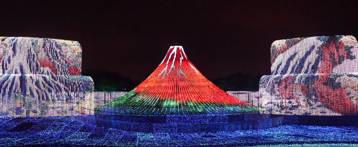 高さ約35mの富士山と、横幅約155mというすべてを圧倒する大スケールで、雄大な景色が魅せる美しい絶景や、想像を超える壮大な情景を表現。