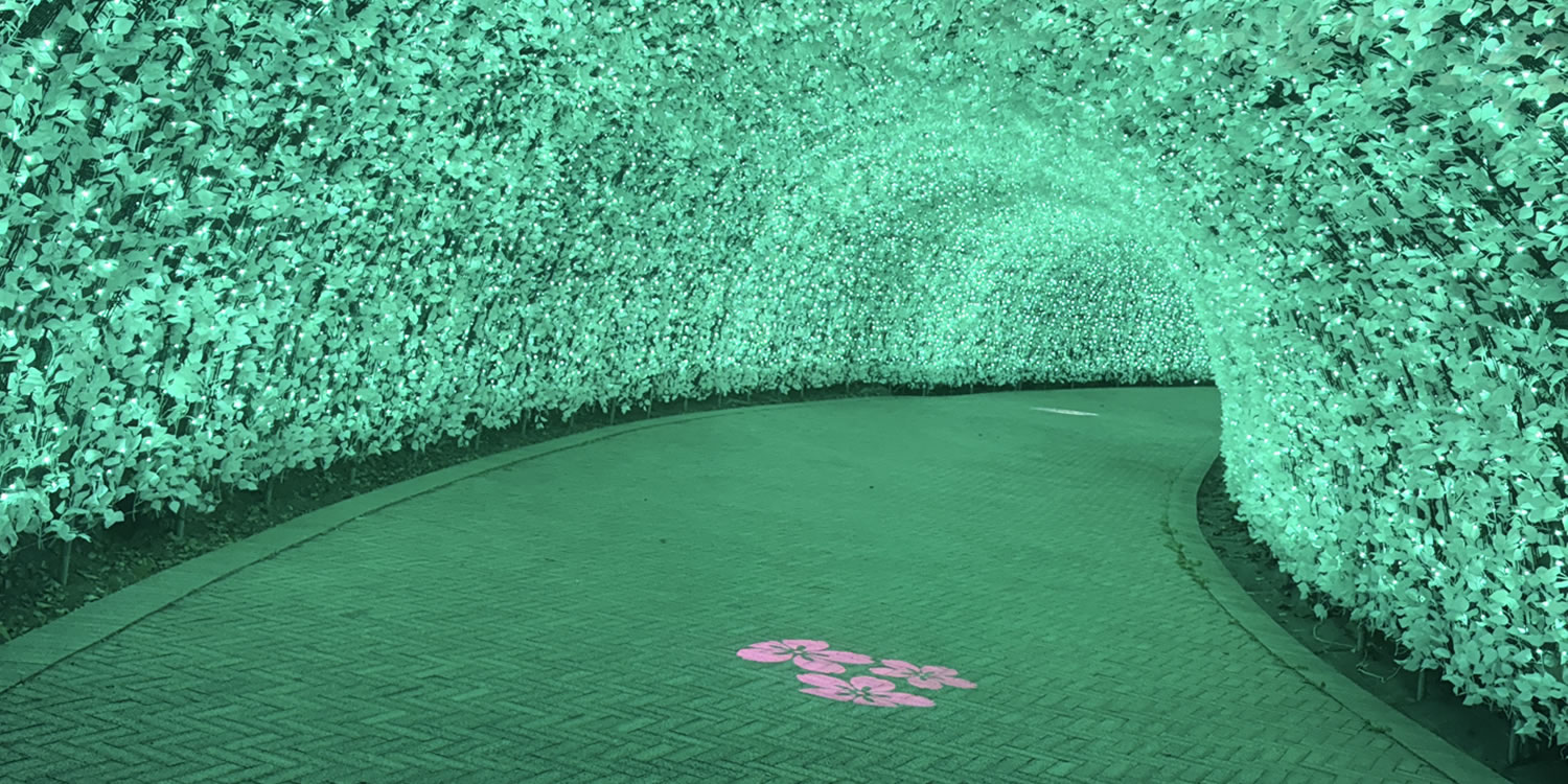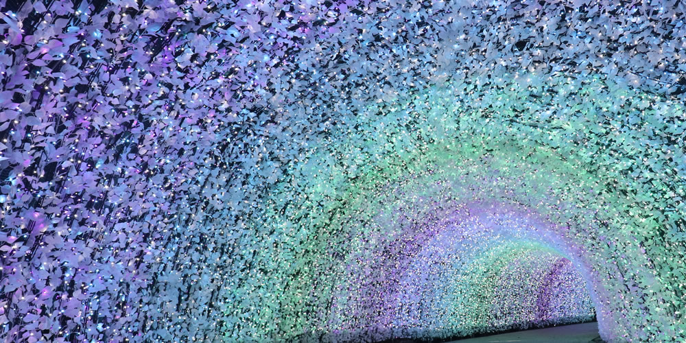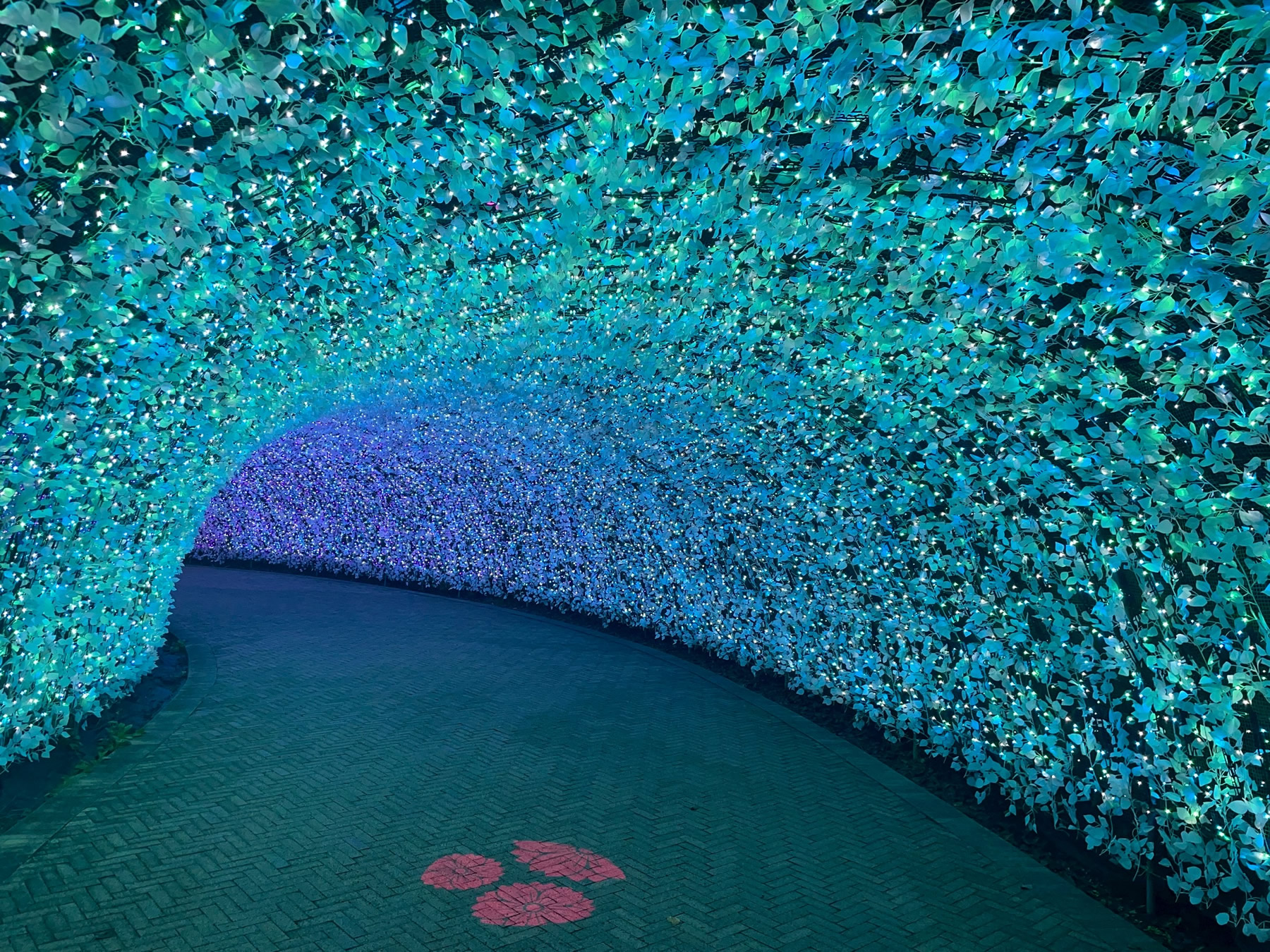 最新の調光技術で海の波のように押し寄せるあかりを表現。鮮やかな色がゆるやかに変化していく