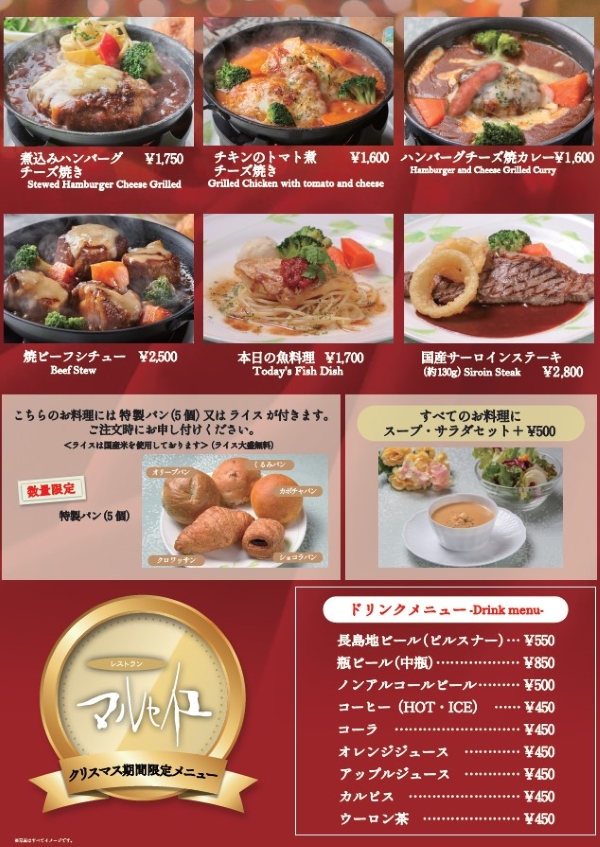 2025.12/23~25 レストラン マルセイユ クリスマス特別営業メニュー