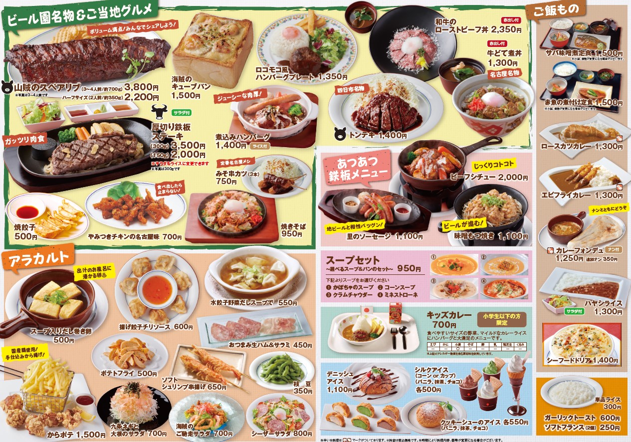 ビアホール:400席(A席178・C席224) ※多目的ホールあり>>> ガーデン:季節や時期により |