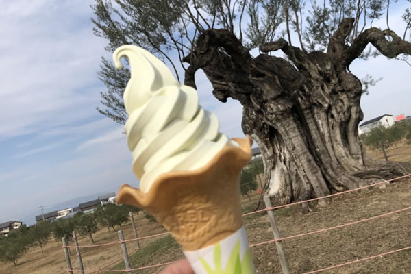 オリーブの実 手摘み体験(約10分)~搾油所 見学(約10分)~オリーブソフト試食(約10分)