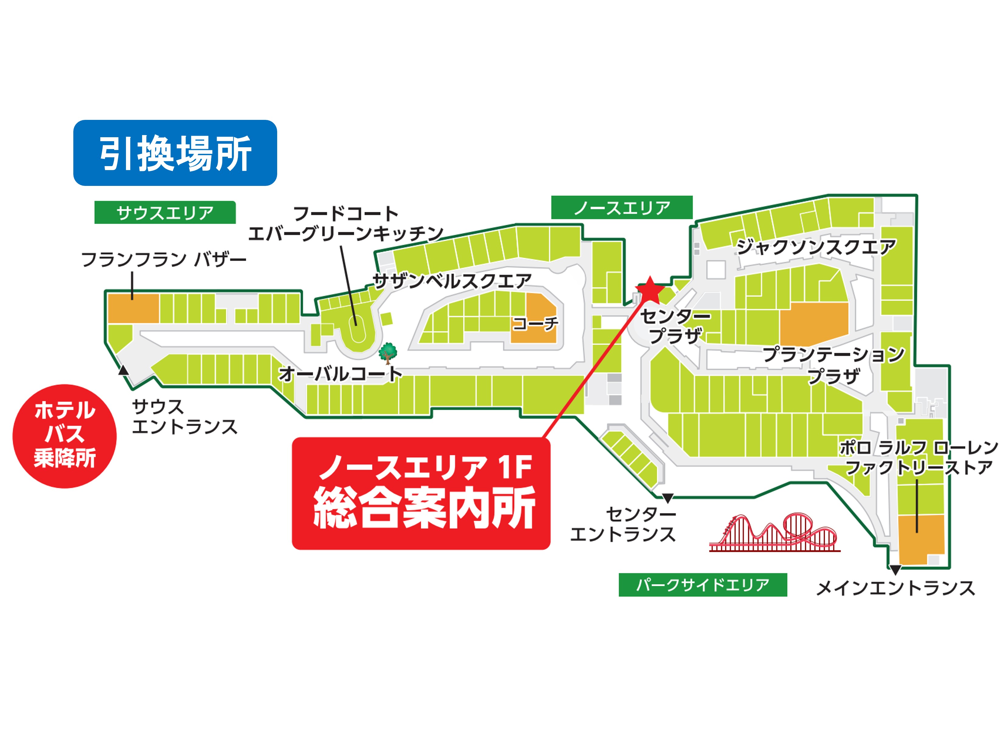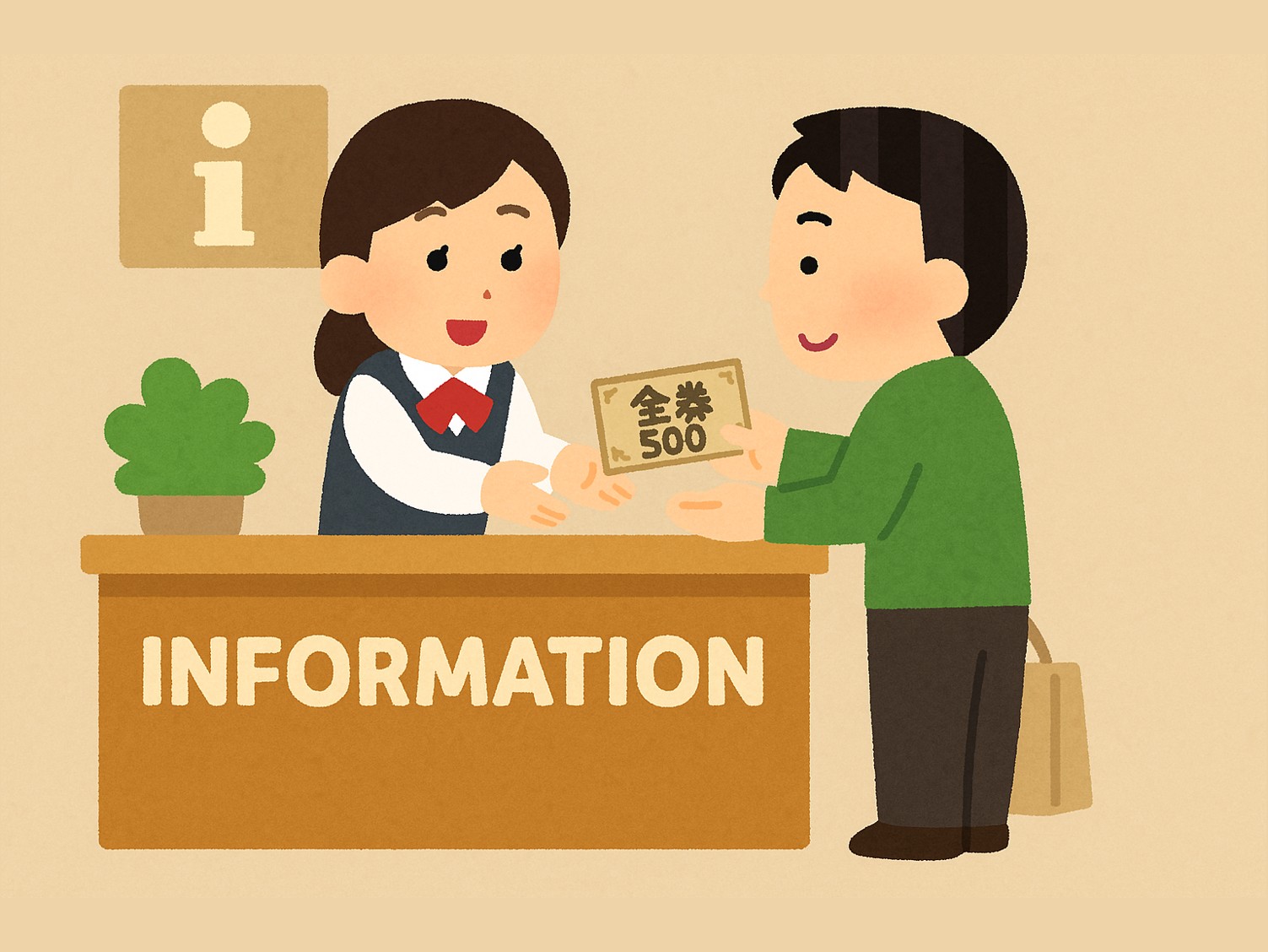 ② 三井アウトレットパーク ジャズドリーム長島ノースエリア1階 総合案内所 で、「引換券」を提示し「お買物・お食事券」を受取ります。