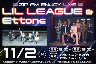 - (1002更新)11/2(日) ZIP-FM公開録音イベント開催!「LIL LEAGUE」「 Ettone」