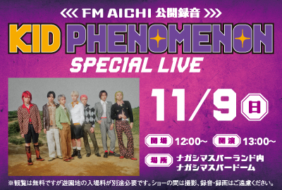 - (1022更新)11/9(日) FM AICHI公開録音イベント開催!「KID PHENOMENON」
