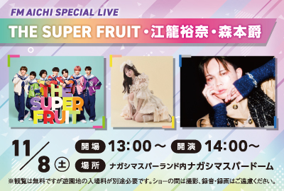 - (1021更新)追加出演決定!!FM AICHI SPECIAL LIVE「THE SUPER FRUIT、江籠裕奈、森本爵」