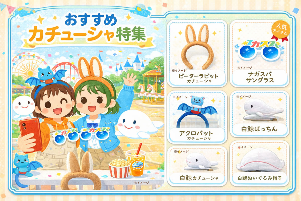 ナガシマスパーランドをもっと楽しく、もっとかわいく。カチューシャやサングラスなど、身につけるだけで気分が上がるオリジナルグッズが登場!友達や家族でおそろいにすれば園内の写真も思い出もさらに楽しく。#ナガスパ グッズを身につけて ナガシマスパーランドを満喫しよう!