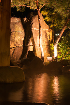 まるで本物の峡谷の中にいるかのように大自然に囲まれた露天風呂です。周囲に配された幾重もの自然岩が圧倒的な迫力で迫ります。